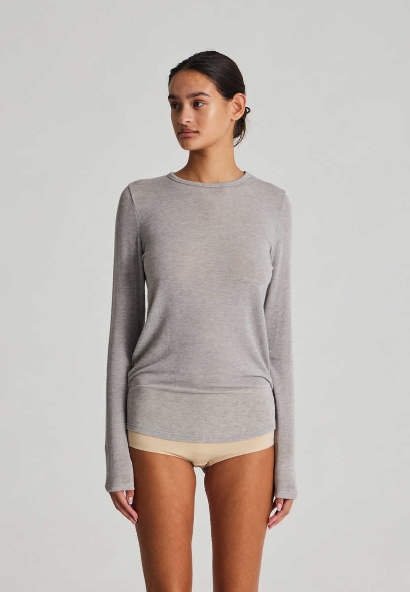 Thyra L/S ullblus i färgen Light Grey Melange från Gai+Lisva . Thyra-blusen i en läcker ullblandning har en rund halsringning och långa ärmar. Blusen har en figursydd design och är något längre bak. Thyra ingår i Gai+Lisvas baskollektion. Blusen är även perfekt som ett inre lager kalla dagar.