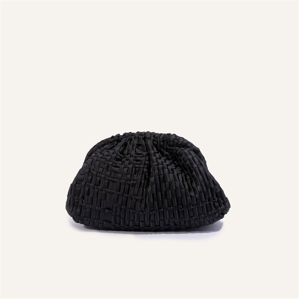 Spelfläta clutch från Maria La Rosa i svart med svart kedja. Väskan kan användas som handväska eller crossbody.